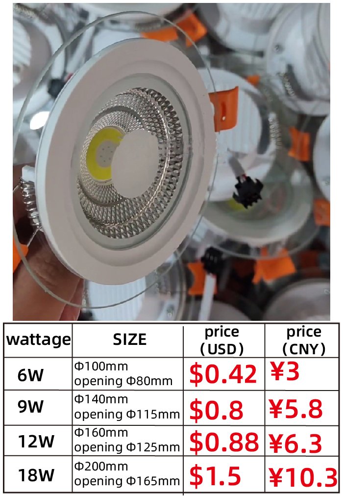 Downlight product models are 6W, 9W,12W,18W and 24W.