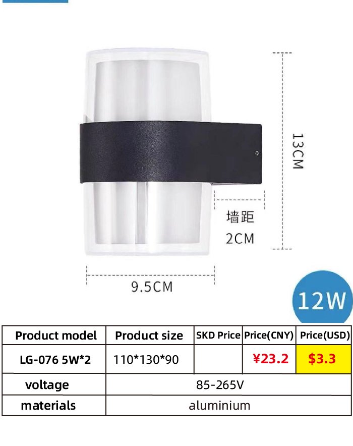LG-076 led outdoor waterproof wall lamp modern simple up and down pc light walkway patio villa exterior wall lamps(12W)
