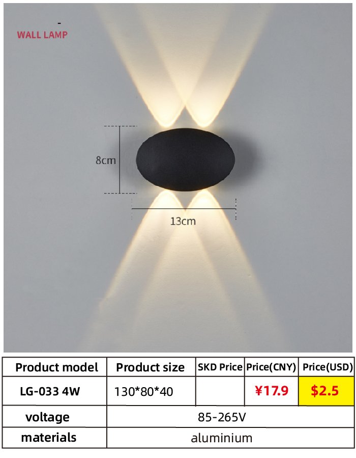 成为第一个“Oval LED waterproof wall lamp modern simple living room TV background wall stairs aisle indoor up and down light (4W)” 的评价者